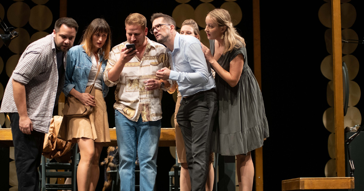 Predstava Erazmovega abonmaja: »Vsak od nas ima tri življenja: eno javno, eno zasebno in eno skrivno.« Druščina prijateljev se junaško odloči za eksperiment - svoje telefone bodo ta večer položili na mizo in na glas prebrali vsebino vsakega sporočila ali se prek zvočnika javili na vsak telefonski klic, ki bi ga prejeli v tem večeru. Produkcija: Šentjakobsko gledališče. Predstava traja 1 uro in 10 minut brez odmora.