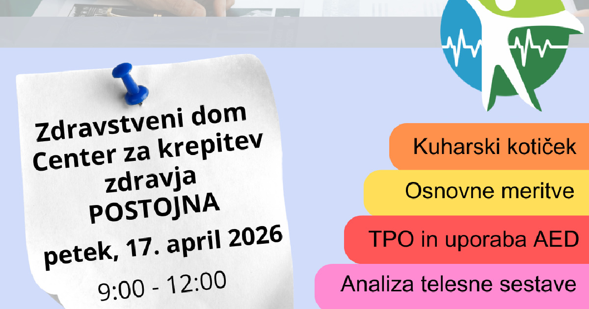 Vabimo vas, da se nam pridružite na Dnevu odprtih vrat Centra za krepitev zdravja ZD Postojna, kjer bomo skupaj odkrivali poti do boljšega počutja in zdravega načina življenja.